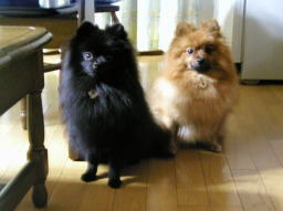 2002年11月13日〜 いつもちょこちょこ動いてなかなか 2ショットが撮れないから ごはんの前の<待て!> で撮ってみましたが 顔が怒ってる…? |